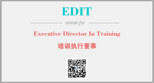 上述内容是“Executive Director In Training”作为“EDIT”的缩写,解释为“培训执行董事”时的信息,以及英文缩略词EDIT所代表的英文单词,其对应的中文拼音、详细解释以及在英文中的流行度和相关分类、应用领域及应用示例等。