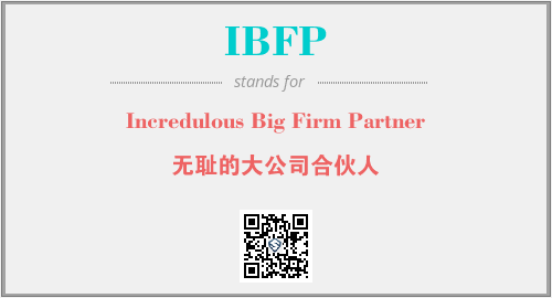 以上为Incredulous Big Firm Partner英文缩略词IBFP的中文解释,以及该英文缩写在英语的流行度、分类和应用领域方面的信息。