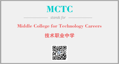上述内容是“Middle College for Technology Careers”作为“MCTC”的缩写,解释为“技术职业中学”时的信息,以及英文缩略词MCTC所代表的英文单词,其对应的中文拼音、详细解释以及在英文中的流行度和相关分类、应用领域及应用示例等。