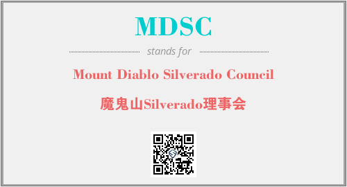 英文缩略词“MDSC”经常作为“Mount Diablo Silverado Council”的英文缩写来使用,中文表示:“魔鬼山Silverado理事会”。本文将详细介绍英文缩写词MDSC所代表英文单词,其对应的中文拼音、详细解释以及在英语中的流行度。此外,还有关于缩略词MDSC的分类、应用领域及相关应用示例等。