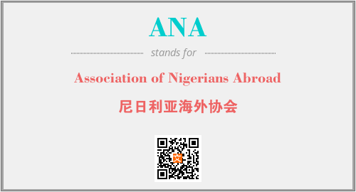 英文缩略词“ANA”经常作为“Association of Nigerians Abroad”的英文缩写来使用,中文表示:“尼日利亚海外协会”。本文将详细介绍英文缩写词ANA所代表英文单词,其对应的中文拼音、详细解释以及在英语中的流行度。此外,还有关于缩略词ANA的分类、应用领域及相关应用示例等。