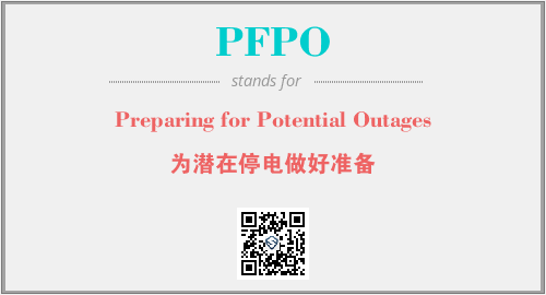 以上为Preparing for Potential Outages英文缩略词PFPO的中文解释,以及该英文缩写在英语的流行度、分类和应用领域方面的信息。