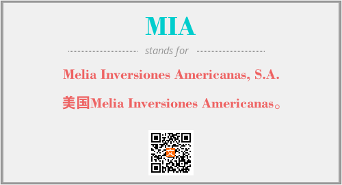 上述内容是“Melia Inversiones Americanas, S.A.”作为“MIA”的缩写,解释为“美国Melia Inversiones Americanas。”时的信息,以及英文缩略词MIA所代表的英文单词,其对应的中文拼音、详细解释以及在英文中的流行度和相关分类、应用领域及应用示例等。