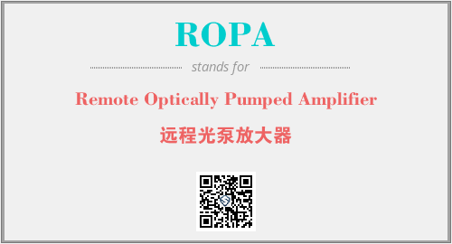 上述内容是“Remote Optically Pumped Amplifier”作为“ROPA”的缩写,解释为“远程光泵放大器”时的信息,以及英文缩略词ROPA所代表的英文单词,其对应的中文拼音、详细解释以及在英文中的流行度和相关分类、应用领域及应用示例等。