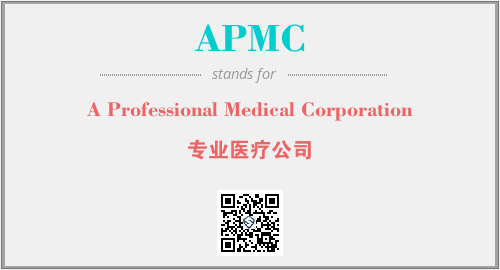 以上为A Professional Medical Corporation英文缩略词APMC的中文解释,以及该英文缩写在英语的流行度、分类和应用领域方面的信息。
