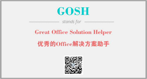 英文缩略词“GOSH”经常作为“Great Office Solution Helper”的英文缩写来使用,中文表示:“优秀的Office解决方案助手”。本文将详细介绍英文缩写词GOSH所代表英文单词,其对应的中文拼音、详细解释以及在英语中的流行度。此外,还有关于缩略词GOSH的分类、应用领域及相关应用示例等。