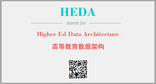 英文缩略词“HEDA”经常作为“Higher Ed Data Architecture”的英文缩写来使用,中文表示:“高等教育数据架构”。本文将详细介绍英文缩写词HEDA所代表英文单词,其对应的中文拼音、详细解释以及在英语中的流行度。此外,还有关于缩略词HEDA的分类、应用领域及相关应用示例等。