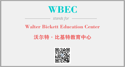 上述内容是“Walter Bickett Education Center”作为“WBEC”的缩写,解释为“沃尔特·比基特教育中心”时的信息,以及英文缩略词WBEC所代表的英文单词,其对应的中文拼音、详细解释以及在英文中的流行度和相关分类、应用领域及应用示例等。
