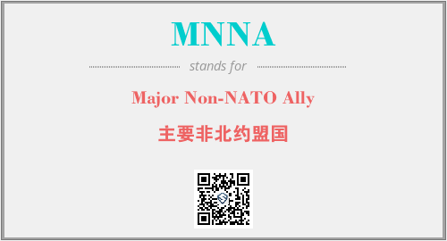 英文缩略词“MNNA”经常作为“Major Non-NATO Ally”的英文缩写来使用,中文表示:“主要非北约盟国”。本文将详细介绍英文缩写词MNNA所代表英文单词,其对应的中文拼音、详细解释以及在英语中的流行度。此外,还有关于缩略词MNNA的分类、应用领域及相关应用示例等。