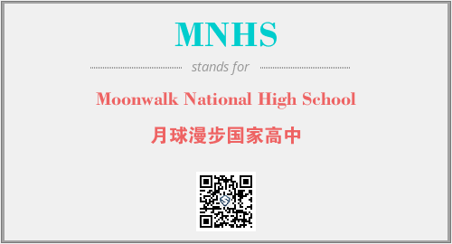 上述内容是“Moonwalk National High School”作为“MNHS”的缩写,解释为“月球漫步国家高中”时的信息,以及英文缩略词MNHS所代表的英文单词,其对应的中文拼音、详细解释以及在英文中的流行度和相关分类、应用领域及应用示例等。