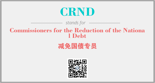 上述内容是“Commissioners for the Reduction of the National Debt”作为“CRND”的缩写,解释为“减免国债专员”时的信息,以及英文缩略词CRND所代表的英文单词,其对应的中文拼音、详细解释以及在英文中的流行度和相关分类、应用领域及应用示例等。