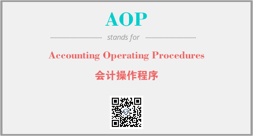 英文缩略词“AOP”经常作为“Accounting Operating Procedures”的英文缩写来使用,中文表示:“会计操作程序”。本文将详细介绍英文缩写词AOP所代表英文单词,其对应的中文拼音、详细解释以及在英语中的流行度。此外,还有关于缩略词AOP的分类、应用领域及相关应用示例等。