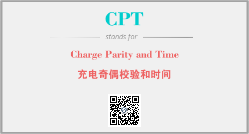 英文缩略词“CPT”经常作为“Charge Parity and Time”的英文缩写来使用,中文表示:“充电奇偶校验和时间”。本文将详细介绍英文缩写词CPT所代表英文单词,其对应的中文拼音、详细解释以及在英语中的流行度。此外,还有关于缩略词CPT的分类、应用领域及相关应用示例等。