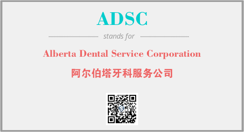 上述内容是“Alberta Dental Service Corporation”作为“ADSC”的缩写,解释为“阿尔伯塔牙科服务公司”时的信息,以及英文缩略词ADSC所代表的英文单词,其对应的中文拼音、详细解释以及在英文中的流行度和相关分类、应用领域及应用示例等。