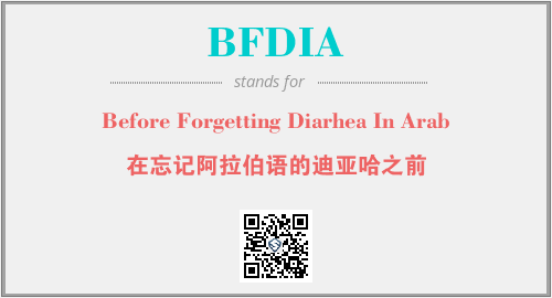 上述内容是“Before Forgetting Diarhea In Arab”作为“BFDIA”的缩写,解释为“在忘记阿拉伯语的迪亚哈之前”时的信息,以及英文缩略词BFDIA所代表的英文单词,其对应的中文拼音、详细解释以及在英文中的流行度和相关分类、应用领域及应用示例等。