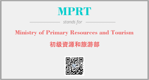 英文缩略词“MPRT”经常作为“Ministry of Primary Resources and Tourism”的英文缩写来使用,中文表示:“初级资源和旅游部”。本文将详细介绍英文缩写词MPRT所代表英文单词,其对应的中文拼音、详细解释以及在英语中的流行度。此外,还有关于缩略词MPRT的分类、应用领域及相关应用示例等。