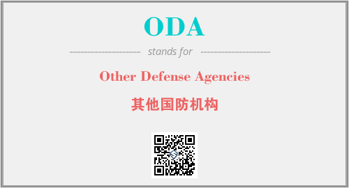 上述内容是“Other Defense Agencies”作为“ODA”的缩写,解释为“其他国防机构”时的信息,以及英文缩略词ODA所代表的英文单词,其对应的中文拼音、详细解释以及在英文中的流行度和相关分类、应用领域及应用示例等。