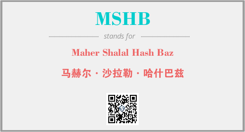 以上为Maher Shalal Hash Baz英文缩略词MSHB的中文解释,以及该英文缩写在英语的流行度、分类和应用领域方面的信息。