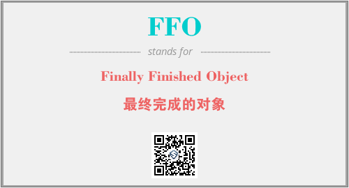 英文缩略词“FFO”经常作为“Finally Finished Object”的英文缩写来使用,中文表示:“最终完成的对象”。本文将详细介绍英文缩写词FFO所代表英文单词,其对应的中文拼音、详细解释以及在英语中的流行度。此外,还有关于缩略词FFO的分类、应用领域及相关应用示例等。