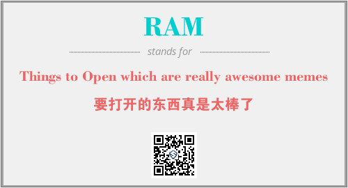 以上为Things to Open which are really awesome memes英文缩略词RAM的中文解释,以及该英文缩写在英语的流行度、分类和应用领域方面的信息。