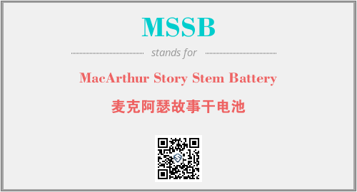 上述内容是“MacArthur Story Stem Battery”作为“MSSB”的缩写,解释为“麦克阿瑟故事干电池”时的信息,以及英文缩略词MSSB所代表的英文单词,其对应的中文拼音、详细解释以及在英文中的流行度和相关分类、应用领域及应用示例等。