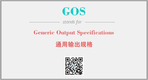 上述内容是“Generic Output Specifications”作为“GOS”的缩写,解释为“通用输出规格”时的信息,以及英文缩略词GOS所代表的英文单词,其对应的中文拼音、详细解释以及在英文中的流行度和相关分类、应用领域及应用示例等。