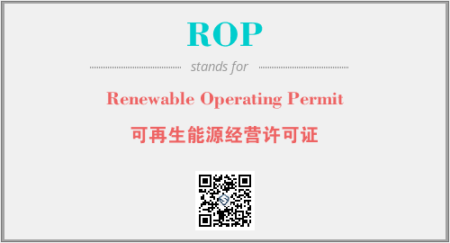 上述内容是“Renewable Operating Permit”作为“ROP”的缩写,解释为“可再生能源经营许可证”时的信息,以及英文缩略词ROP所代表的英文单词,其对应的中文拼音、详细解释以及在英文中的流行度和相关分类、应用领域及应用示例等。