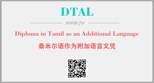 以上为Diploma in Tamil as an Additional Language英文缩略词DTAL的中文解释,以及该英文缩写在英语的流行度、分类和应用领域方面的信息。
