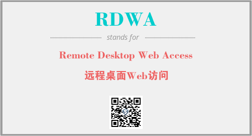 英文缩略词“RDWA”经常作为“Remote Desktop Web Access”的英文缩写来使用,中文表示:“远程桌面Web访问”。本文将详细介绍英文缩写词RDWA所代表英文单词,其对应的中文拼音、详细解释以及在英语中的流行度。此外,还有关于缩略词RDWA的分类、应用领域及相关应用示例等。