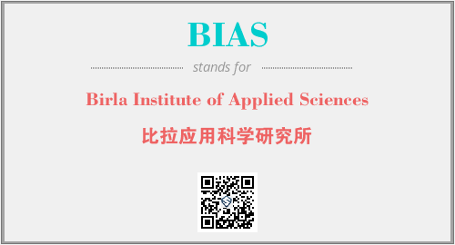 上述内容是“Birla Institute of Applied Sciences”作为“BIAS”的缩写,解释为“比拉应用科学研究所”时的信息,以及英文缩略词BIAS所代表的英文单词,其对应的中文拼音、详细解释以及在英文中的流行度和相关分类、应用领域及应用示例等。