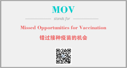 上述内容是“Missed Opportunities for Vaccination”作为“MOV”的缩写,解释为“错过接种疫苗的机会”时的信息,以及英文缩略词MOV所代表的英文单词,其对应的中文拼音、详细解释以及在英文中的流行度和相关分类、应用领域及应用示例等。