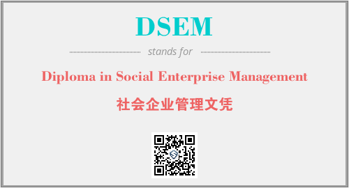 上述内容是“Diploma in Social Enterprise Management”作为“DSEM”的缩写,解释为“社会企业管理文凭”时的信息,以及英文缩略词DSEM所代表的英文单词,其对应的中文拼音、详细解释以及在英文中的流行度和相关分类、应用领域及应用示例等。