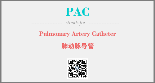 英文缩略词“PAC”经常作为“Pulmonary Artery Catheter”的英文缩写来使用,中文表示:“肺动脉导管”。本文将详细介绍英文缩写词PAC所代表英文单词,其对应的中文拼音、详细解释以及在英语中的流行度。此外,还有关于缩略词PAC的分类、应用领域及相关应用示例等。