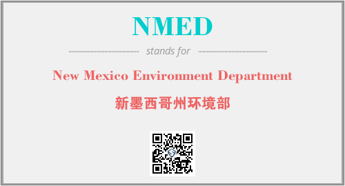 上述内容是“New Mexico Environment Department”作为“NMED”的缩写,解释为“新墨西哥州环境部”时的信息,以及英文缩略词NMED所代表的英文单词,其对应的中文拼音、详细解释以及在英文中的流行度和相关分类、应用领域及应用示例等。
