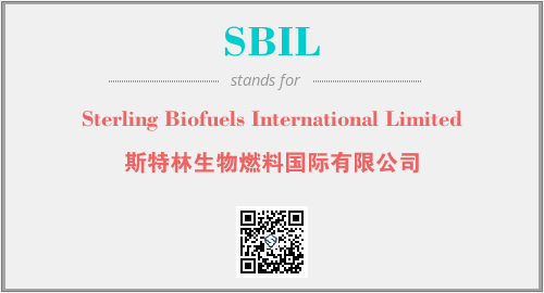 上述内容是“Sterling Biofuels International Limited”作为“SBIL”的缩写,解释为“斯特林生物燃料国际有限公司”时的信息,以及英文缩略词SBIL所代表的英文单词,其对应的中文拼音、详细解释以及在英文中的流行度和相关分类、应用领域及应用示例等。