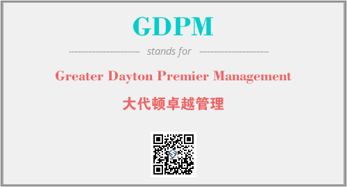 上述内容是“Greater Dayton Premier Management”作为“GDPM”的缩写,解释为“大代顿卓越管理”时的信息,以及英文缩略词GDPM所代表的英文单词,其对应的中文拼音、详细解释以及在英文中的流行度和相关分类、应用领域及应用示例等。