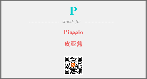 英文缩略词“P”经常作为“Piaggio”的英文缩写来使用,中文表示:“皮亚焦”。本文将详细介绍英文缩写词P所代表英文单词,其对应的中文拼音、详细解释以及在英语中的流行度。此外,还有关于缩略词P的分类、应用领域及相关应用示例等。