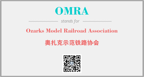 英文缩略词“OMRA”经常作为“Ozarks Model Railroad Association”的英文缩写来使用,中文表示:“奥扎克示范铁路协会”。本文将详细介绍英文缩写词OMRA所代表英文单词,其对应的中文拼音、详细解释以及在英语中的流行度。此外,还有关于缩略词OMRA的分类、应用领域及相关应用示例等。