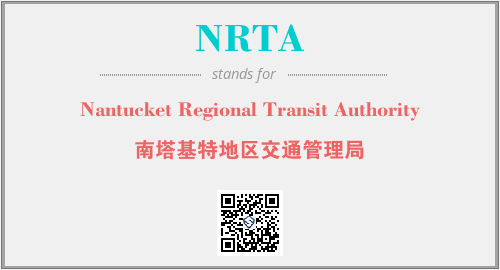 上述内容是“Nantucket Regional Transit Authority”作为“NRTA”的缩写,解释为“南塔基特地区交通管理局”时的信息,以及英文缩略词NRTA所代表的英文单词,其对应的中文拼音、详细解释以及在英文中的流行度和相关分类、应用领域及应用示例等。