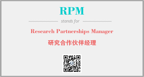 以上为Research Partnerships Manager英文缩略词RPM的中文解释,以及该英文缩写在英语的流行度、分类和应用领域方面的信息。