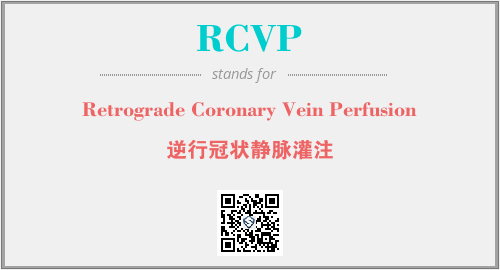 英文缩略词“RCVP”经常作为“Retrograde Coronary Vein Perfusion”的英文缩写来使用,中文表示:“逆行冠状静脉灌注”。本文将详细介绍英文缩写词RCVP所代表英文单词,其对应的中文拼音、详细解释以及在英语中的流行度。此外,还有关于缩略词RCVP的分类、应用领域及相关应用示例等。