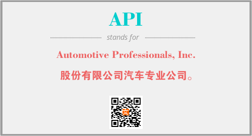 上述内容是“Automotive Professionals, Inc.”作为“API”的缩写,解释为“股份有限公司汽车专业公司。”时的信息,以及英文缩略词API所代表的英文单词,其对应的中文拼音、详细解释以及在英文中的流行度和相关分类、应用领域及应用示例等。