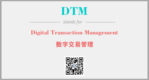 英文缩略词“DTM”经常作为“Digital Transaction Management”的英文缩写来使用,中文表示:“数字交易管理”。本文将详细介绍英文缩写词DTM所代表英文单词,其对应的中文拼音、详细解释以及在英语中的流行度。此外,还有关于缩略词DTM的分类、应用领域及相关应用示例等。