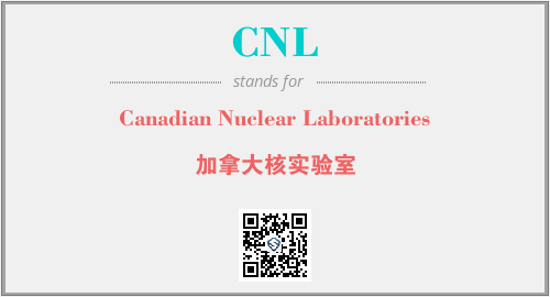 上述内容是“Canadian Nuclear Laboratories”作为“CNL”的缩写,解释为“加拿大核实验室”时的信息,以及英文缩略词CNL所代表的英文单词,其对应的中文拼音、详细解释以及在英文中的流行度和相关分类、应用领域及应用示例等。