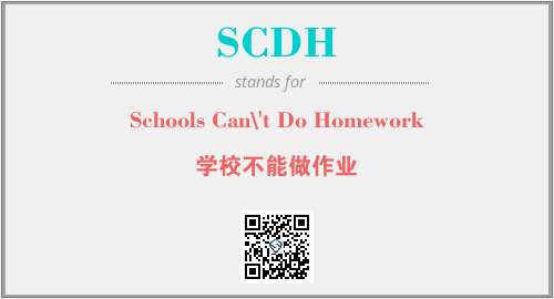 上述内容是“Schools Can\'t Do Homework”作为“SCDH”的缩写,解释为“学校不能做作业”时的信息,以及英文缩略词SCDH所代表的英文单词,其对应的中文拼音、详细解释以及在英文中的流行度和相关分类、应用领域及应用示例等。