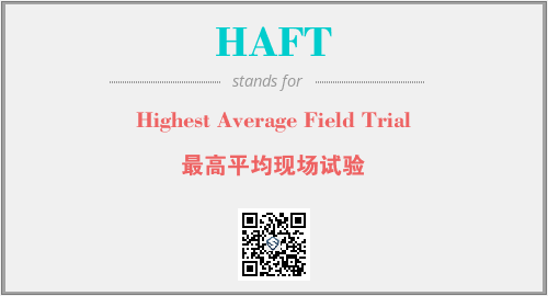 上述内容是“Highest Average Field Trial”作为“HAFT”的缩写,解释为“最高平均现场试验”时的信息,以及英文缩略词HAFT所代表的英文单词,其对应的中文拼音、详细解释以及在英文中的流行度和相关分类、应用领域及应用示例等。