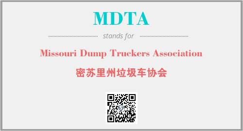 上述内容是“Missouri Dump Truckers Association”作为“MDTA”的缩写,解释为“密苏里州垃圾车协会”时的信息,以及英文缩略词MDTA所代表的英文单词,其对应的中文拼音、详细解释以及在英文中的流行度和相关分类、应用领域及应用示例等。