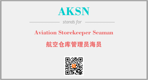 英文缩略词“AKSN”经常作为“Aviation Storekeeper Seaman”的英文缩写来使用,中文表示:“航空仓库管理员海员”。本文将详细介绍英文缩写词AKSN所代表英文单词,其对应的中文拼音、详细解释以及在英语中的流行度。此外,还有关于缩略词AKSN的分类、应用领域及相关应用示例等。