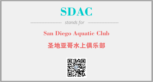 上述内容是“San Diego Aquatic Club”作为“SDAC”的缩写,解释为“圣地亚哥水上俱乐部”时的信息,以及英文缩略词SDAC所代表的英文单词,其对应的中文拼音、详细解释以及在英文中的流行度和相关分类、应用领域及应用示例等。