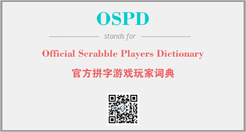 英文缩略词“OSPD”经常作为“Official Scrabble Players Dictionary”的英文缩写来使用,中文表示:“官方拼字游戏玩家词典”。本文将详细介绍英文缩写词OSPD所代表英文单词,其对应的中文拼音、详细解释以及在英语中的流行度。此外,还有关于缩略词OSPD的分类、应用领域及相关应用示例等。